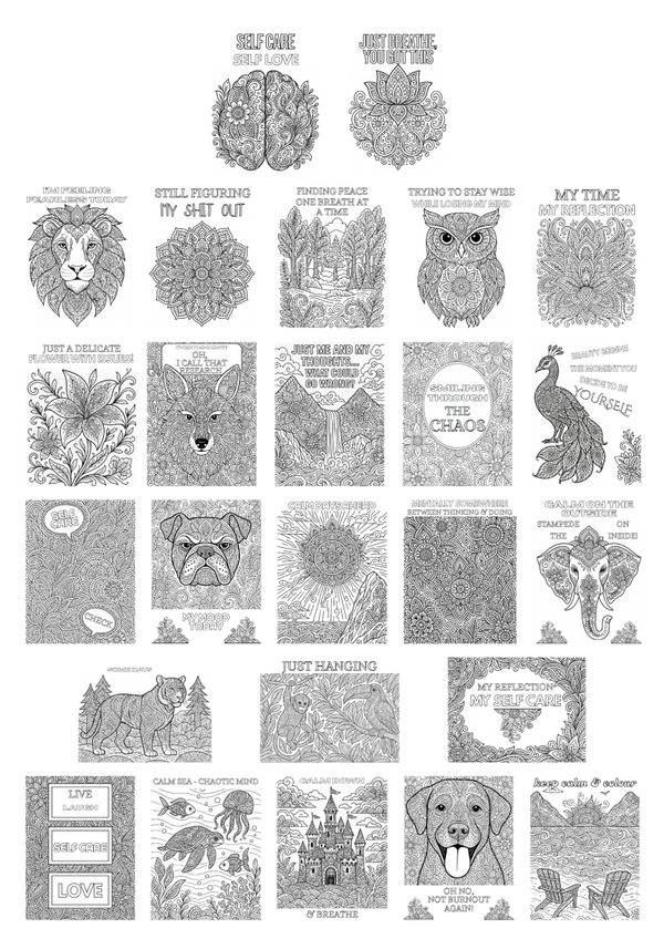 Me & My Reflection is the colouring book to assist with self care when feeling anxious, over whelmed or just wanting to switch off.